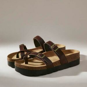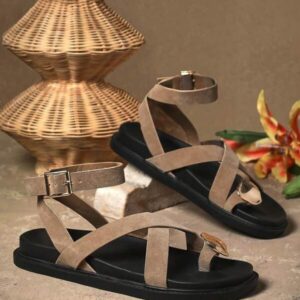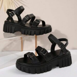 รองเท้ารัดส้นสีดำ สามเส้น แต่งหัวเข็มขัด สไตล์หรู