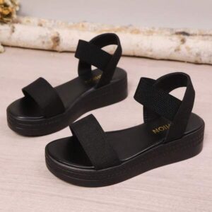 รองเท้ารัดส้นสีดำ สามเส้น พื้นหนา สไตล์สปอร์ต