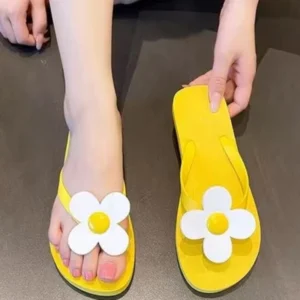 รองเท้าหูหนีบฟองน้ำ ตกแต่งดอกไม้สุดคิวท์ สีเหลือง