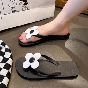 รองเท้าหูหนีบฟองน้ำ ตกแต่งดอกไม้สุดคิวท์ สีดำ
