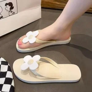 รองเท้าหูหนีบฟองน้ำ ตกแต่งดอกไม้สุดคิวท์ สีครีม