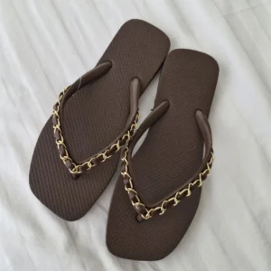 รองเท้าหูหนีบแฟชั่น แต่งโซ่ที่สาย สีน้ำตาล