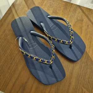 รองเท้าหูหนีบแฟชั่น แต่งโซ่ที่สาย สีน้ำเงิน