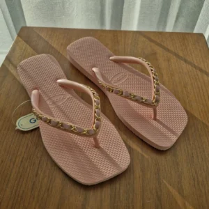 รองเท้าหูหนีบแฟชั่น แต่งโซ่ที่สาย สีชมพู