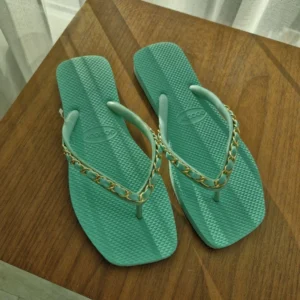 รองเท้าหูหนีบแฟชั่น แต่งโซ่ที่สาย สีเขียวน้ำทะเล