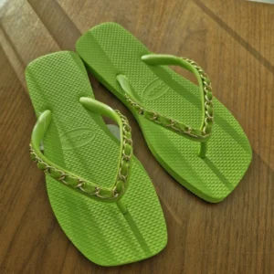 รองเท้าหูหนีบแฟชั่น แต่งโซ่ที่สาย สีเขียวอ่อน