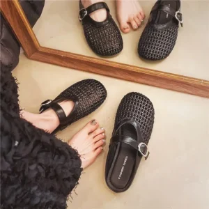 รองเท้าหัวปิดระบายอากาศ แฟชั่น สีดำ