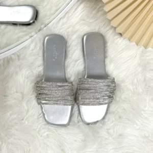 รองเท้าแตะแฟชั่น สีเงิน คาดเส้นกลิตเตอร์สุดแกลม