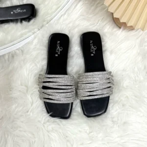 รองเท้าแตะแฟชั่น สีดำ คาดเส้นกลิตเตอร์สุดแกลม