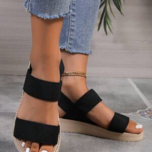 รองเท้ารัดส้นสีดำ สองเส้น สไตล์สปอร์ต