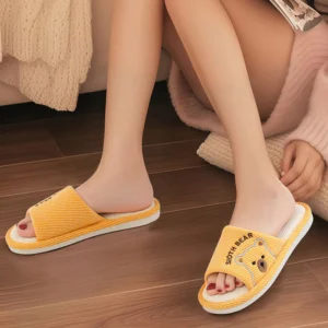 รองเท้าสลิปเปอร์ใส่ในบ้าน ลายหมี สีเหลือง