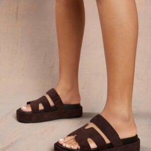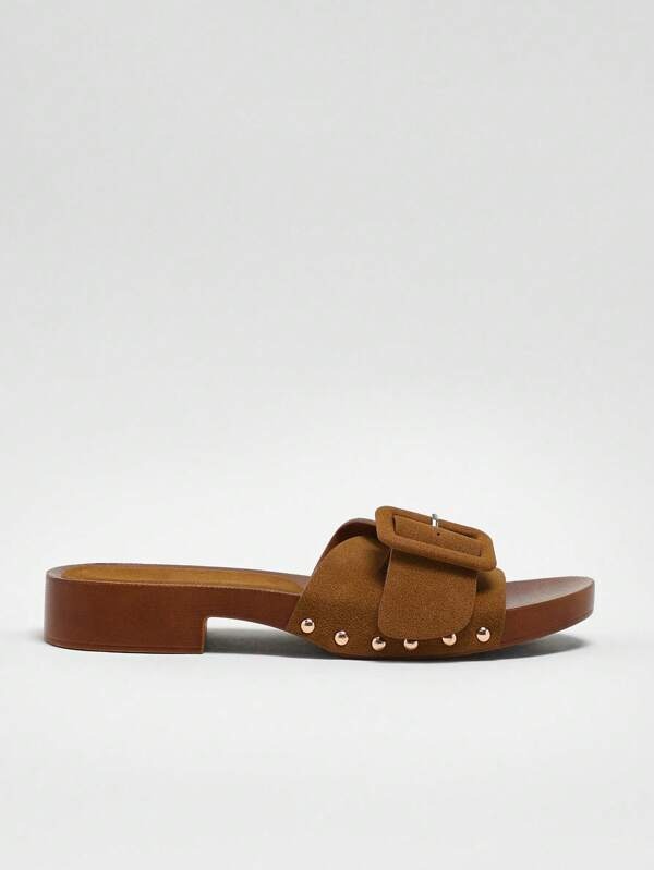 รองเท้าสไลด์สีน้ำตาล พื้นเตี้ย สไตล์สบายเท้า ใส่สบาย เหมาะกับใส่ในบ้าน