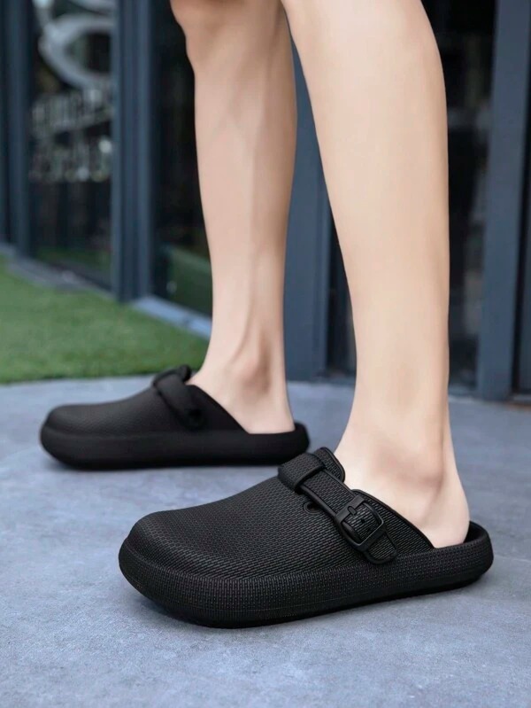 รองเท้าแตะหุ้มหน้าสีดำ นุ่มเบา สไตล์สบายเท้า เหมาะกับใส่ในบ้าน